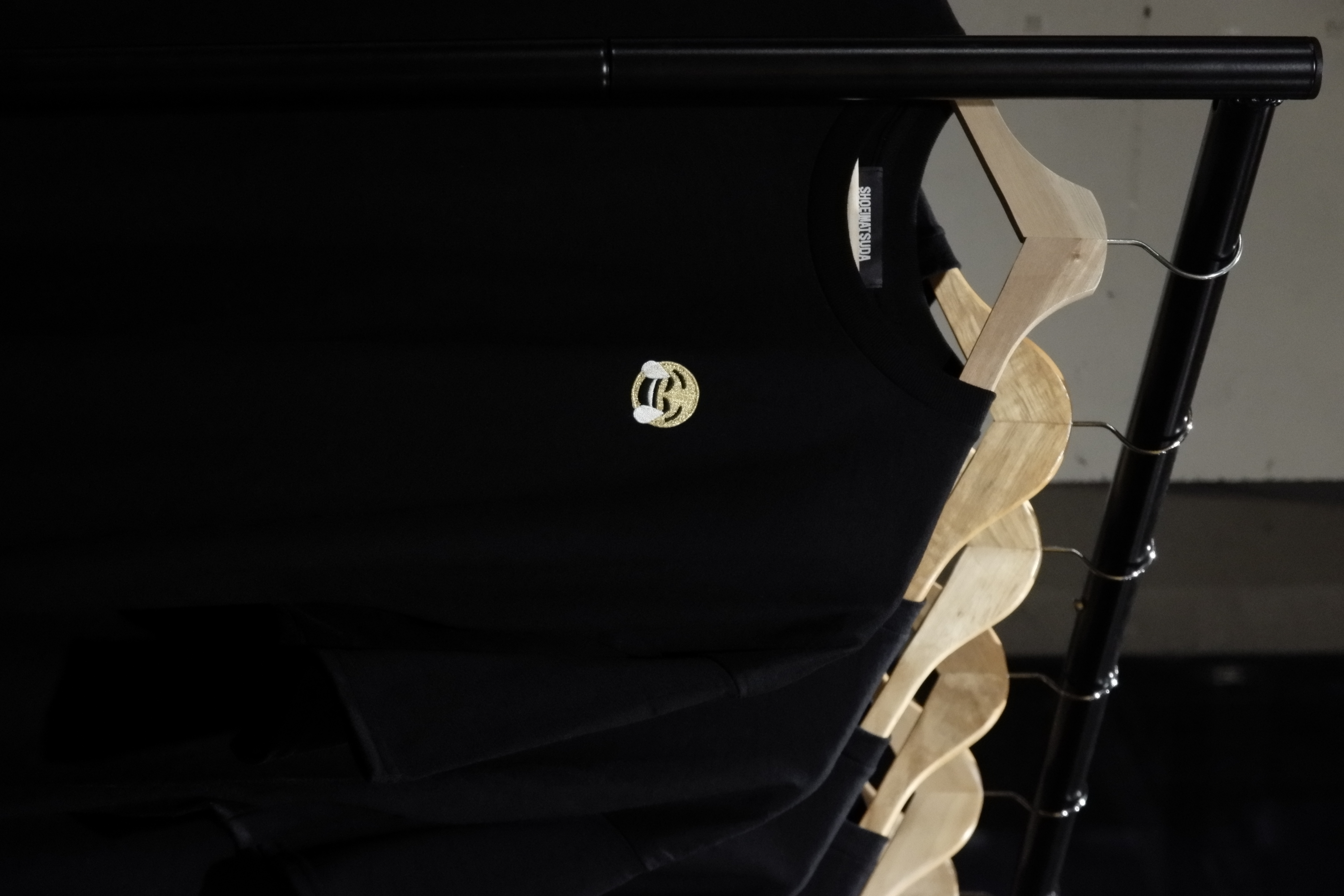 今回の松田将英とのコラボレーションは、こうしたこれまでの流れを受け継ぎながら、デジタル時代に身近な記号を別の角度から捉え直し、新しい視点を提示する試みです。コラボレーションアイテムは、世界で最も使用されている「笑い泣き」の絵文字をモチーフとした松田の代表作《The Laughing Man》シリーズを起点に、世界で最も売れているTシャツの一つであるGILDANのボディ、そしてファッションブランドのTシャツ文化において象徴的に記憶されてきたビジュアル構造を重ね合わせた一枚です。ALMOSTBLACKは本コラボレーションにおいて、Tシャツを単なるプリントプロダクトとしてではなく、記号と消費、オリジナルとコピー、希少性と量産性が交錯するメディアとして捉え、表現しています。